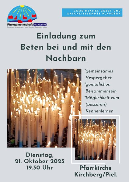 Einladung zum Beten bei/mit den Nachbarn diesmal in der Pfarrkirche Kirchberg mehr: Einladung zum Beten bei/mit den Nachbarn